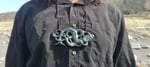 Strung as a side hanging breastplate, the taonga is much bigger and heavier than the others and is about 14cm by 7cm approx, with an adjustable sliding braid.