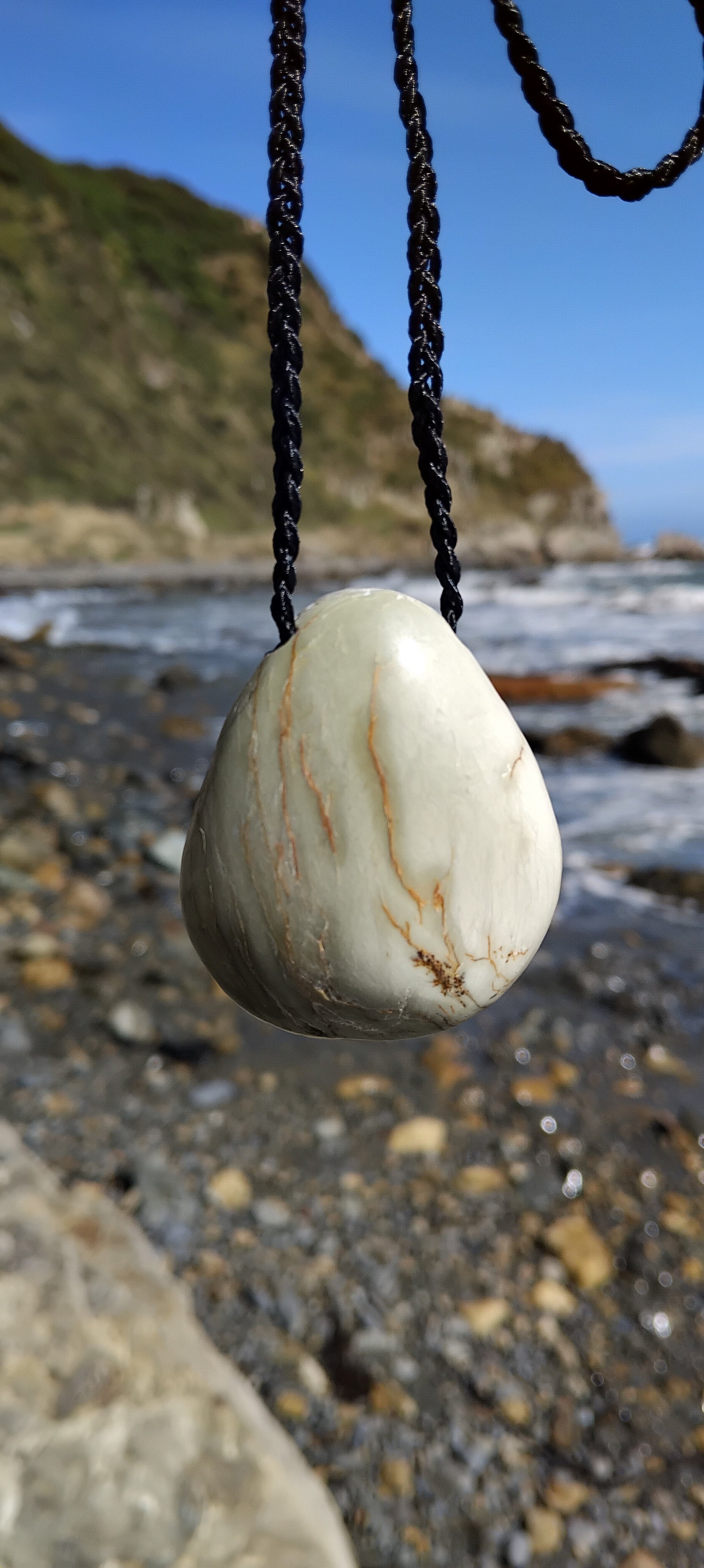 Half polished natural Kokopu Pounamu pendant. Collected myself from Ngati Koata whenua in Te Tai o Aorere. Approximately 5cm long, this is a chunky pebble with some weight to it.